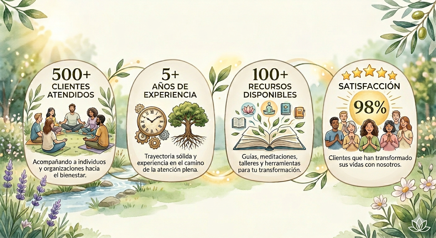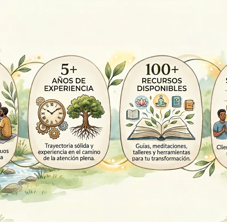 Esta profunda transformación no solo sanó mi vida, sino que le dio un nuevo propósito. Para poder guiar y ayudar a otros con el respeto que este camino merece, me he dedicado a una formación continua y profunda. He aprendido de mentores y programas internacionales que abarcan no solo el mindfulness, sino todo el espectro del desarrollo del Ser y del bienestar. Entiendo que este es un sendero de aprendizaje para toda la vida, y es desde esa humildad y curiosidad que comparto contigo lo que he aprendido, que te ayude a crecer y afrontar de una manera segura y eficaz la situación por la que te enfrentas.
